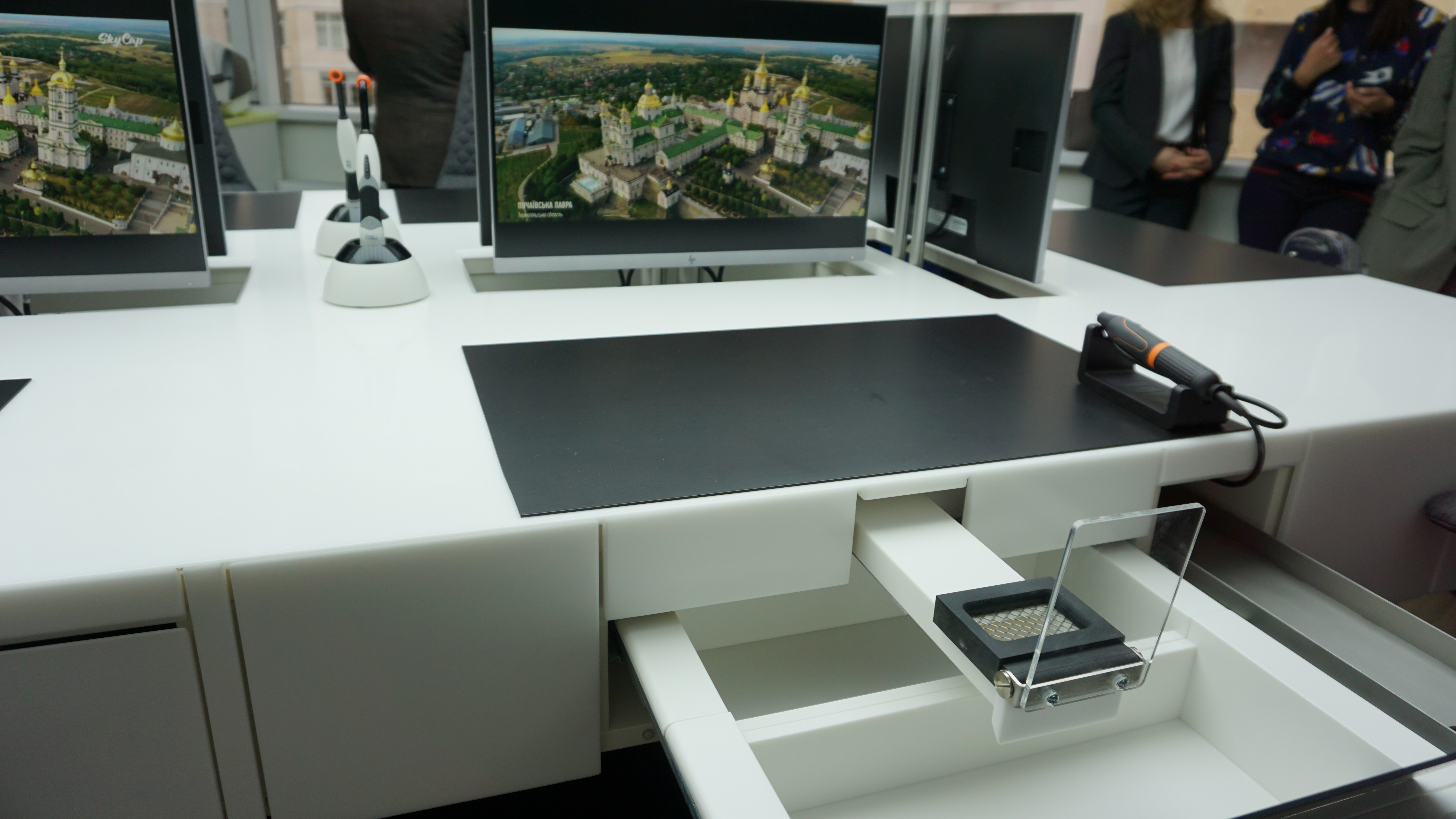 Проект 2018 року, учбового центру IVOCLAR -Kiev, з підключенням централізованої витяжної ситстеми ZUBLER Vario FZ10 на 18 робочих місць.