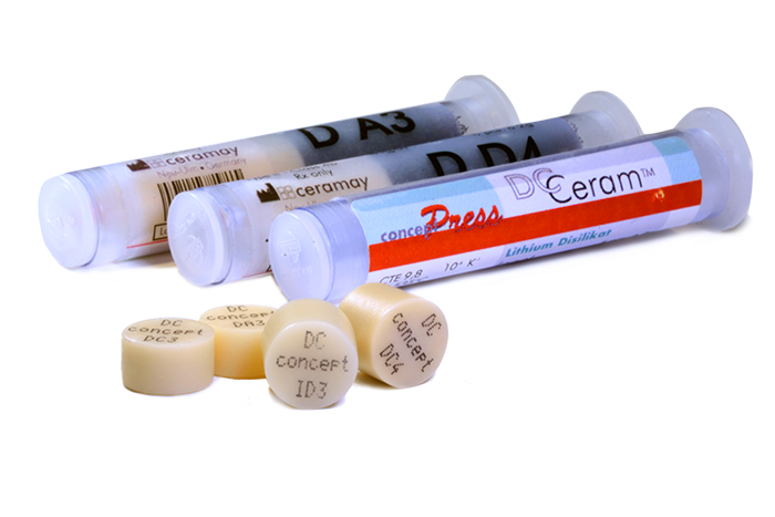 Пресовані керамічні заготовки системи Ceramay conceptPress виготовлені з дуже міцної склокераміки і пофарбовані в кольори, які відповідають шкалі кольорів Vita®*Classical від А1 до D4. Крім цього, пропонуються три ультрасвітлі заготовки з різними значеннями.