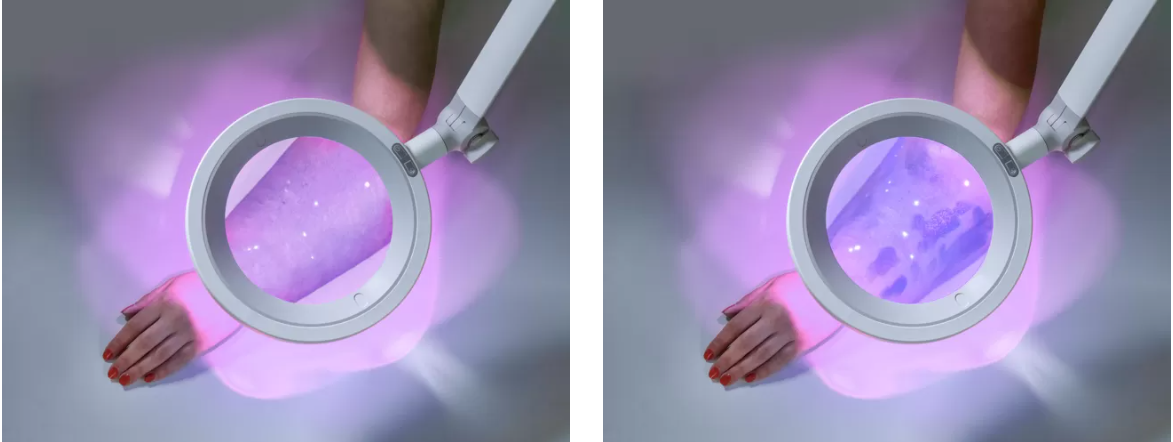 для вивчення флуоресцентних осередків захворювань та змін пігментації.