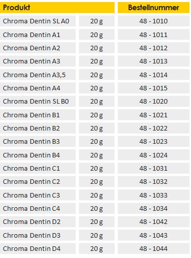 The Chromadentine of the DC Ceram ™ 9.2 create natural depth even with the smallest layer thicknesses the layered ceramic. In the event of insufficient space, they can be added to or added to the dentine to strengthen the chroma.