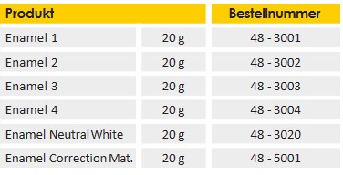 The standard Enamel EN1 to EN4 ensure safe and reproducible layering according to the Vita® Classical shade system.