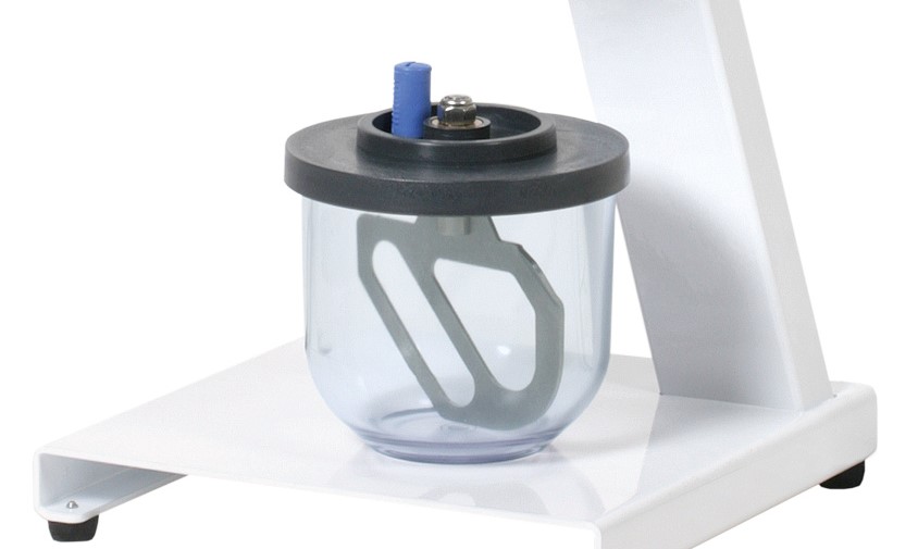 ECM 400 – Mixer for plasters and investments. With integrated vacuum pump (max vacuum -870 mbar). Adjustment of the mixing time by digital timer. Supplied with thebase to place the equipment on the bench and with the support to fix it to the wall.