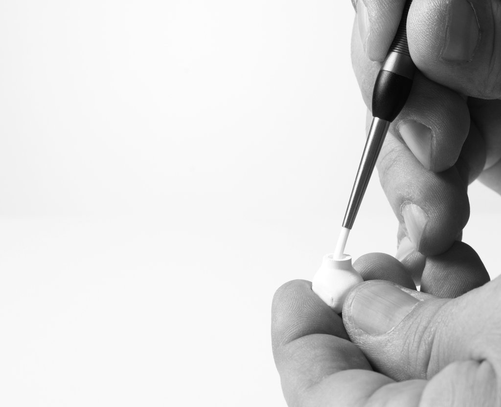 Zirconia milling creates a very fine powder after milling, and is difficult to not only see, but to remove, so this new brush tip has been designed with very stable synthetic hair in a very tightly shaped bundle, which gives excelletnt properties for removing this fine powder from your work, there is nothing worse than sintering Zirconia and finding that powder remains were still inside the fitting surface.