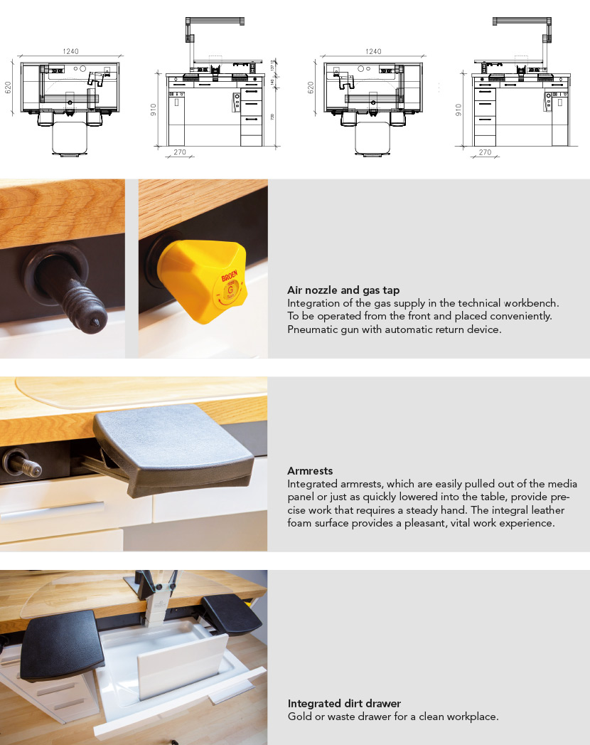 Одноместный зуботехнический стол M4/4, правосторонний/левосторонний (полная комплектация)