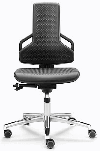 Сиденье и спинка из поролона. Синхронная механика с наклоном сиденья (5°) и регулировкой глубины сиденья (5см). Спинка со скользящими ручками. Цвет пластиковых деталей – черный. Основа из блестящего алюминия. Ролики для твердых полов. Высота сиденья 48-62см