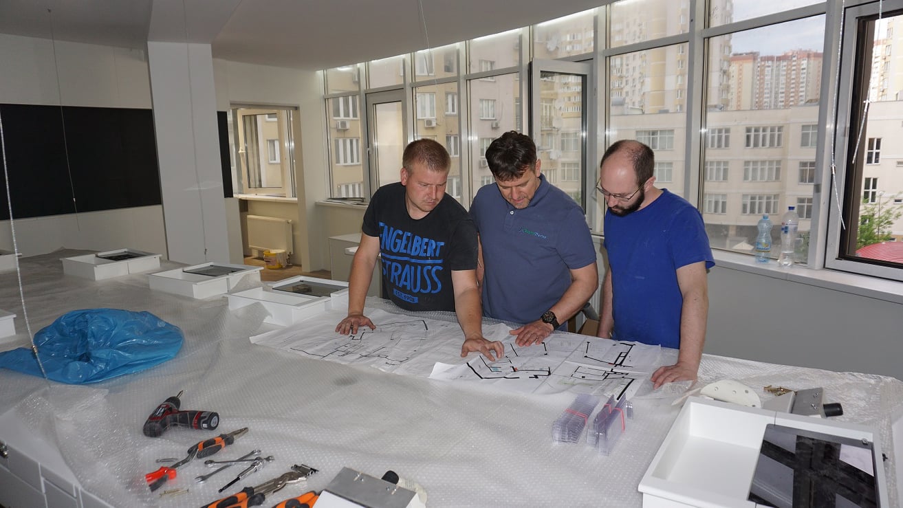 Проект 2018 року, учбового центру IVOCLAR -Kiev, з підключенням централізованої витяжної ситстеми ZUBLER Vario FZ10 на 18 робочих місць.