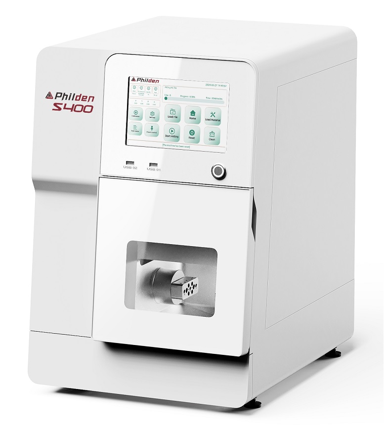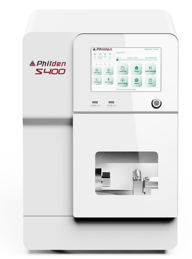 Фрезерний верстат модель S 400 – це інноваційний, найсучасніший, високої якості, точний, продуктивний, надійний, швидкісний фрезер від відомого китайського виробника компанії PHILDENT. Чотири осьовий фрезерний верстат S 400, призначений для вологого фрезерування, швидко і точно фрезерувати різні види матеріалу:титанові абатменти, дісілікат літію, полевошпатну кераміку, усі загально поширені сплінт-матеріали (довжиною до 45 мм), PMMA, та заготовки для абатментів.Просте у використані інтелектуальне російсько мовне меню, контроль процесу фрезерування і інструментів, комфорт та зручність в роботі, забезпечує високий стабільний результат відфрезерованої роботи.
