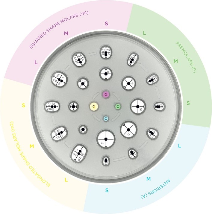 Cervico Guide включає 1 силіконовий автоклавуємий лоток, 20 насадок, 1 магнітну утримуючу ручку, 4 направляючих штифти.
