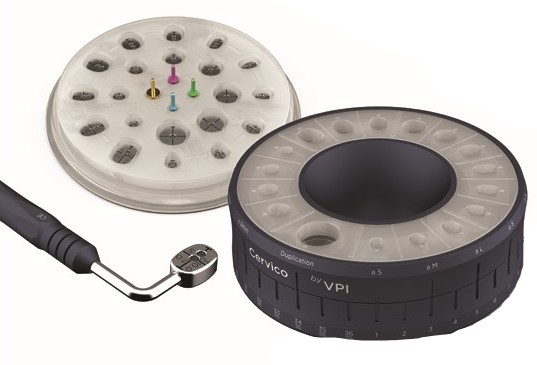 Cervico mold включає алюмінієву форму та силіконову вставку плюс шестигранну викрутку, яка використовується для позиціонування протезної вставки і для видалення силіконової вставки з алюмінієвої основи