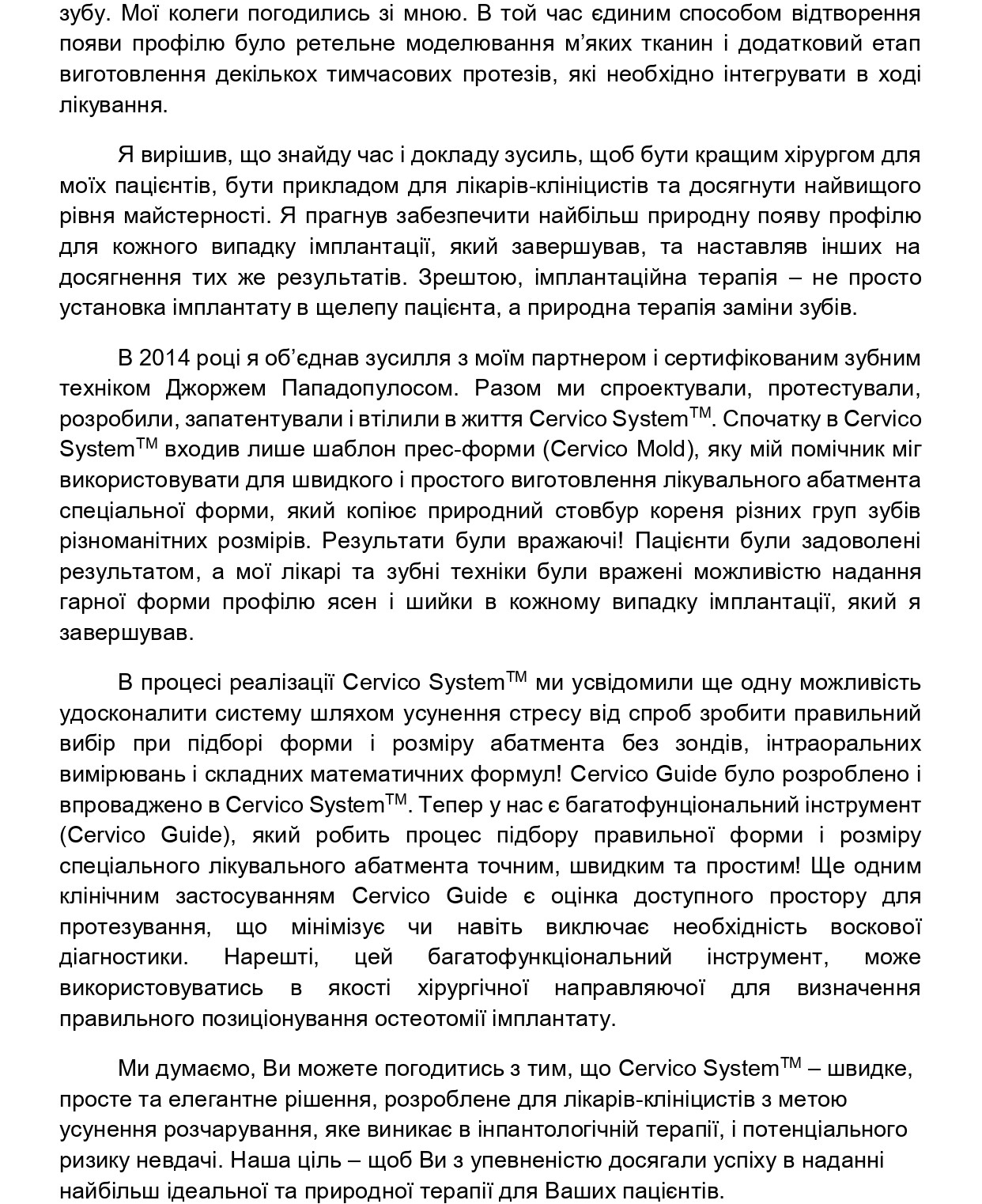 Код товару: Історія розробки Cervico by VPI